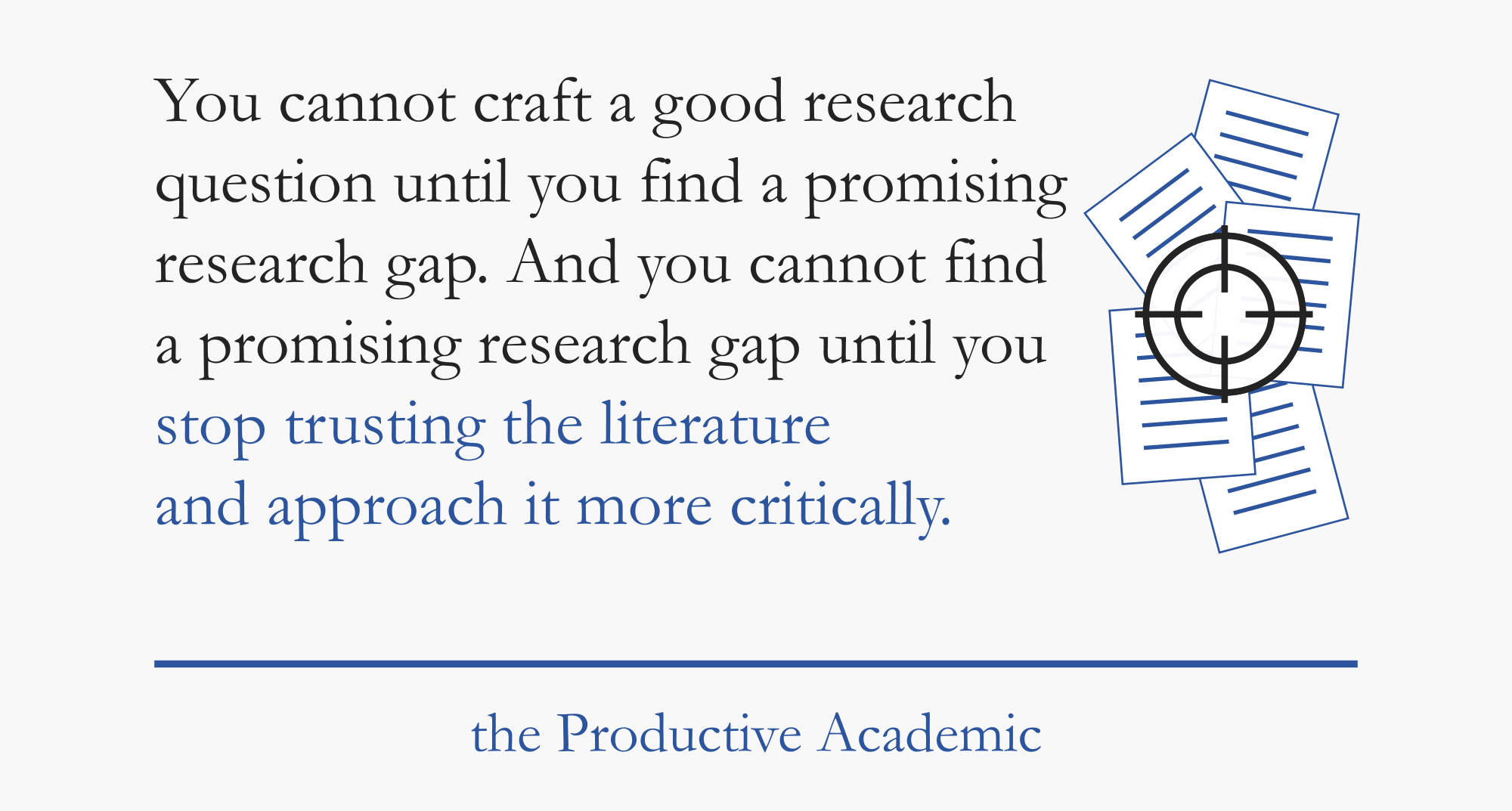 See, the academic literature has a few defects—a few flaws that make it a challenge to read. I’ve realized that I cannot fix these defects. But I can avoid them. I’ve developed my literature review strategy to do just that. And it’s made all the difference in changing a painful, unproductive experience into something much more effective. Something that’s almost enjoyable.